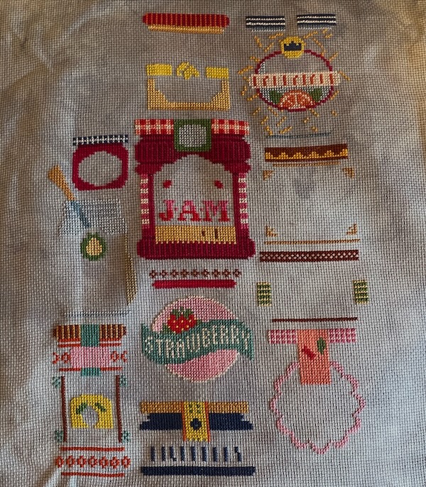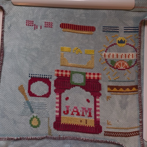 There’s nothing better than coming home after day 5 of 5, knowing you have a few days off and ALL the time in the world for stitching! This is my start point for today…with a little bit already done at the top left…